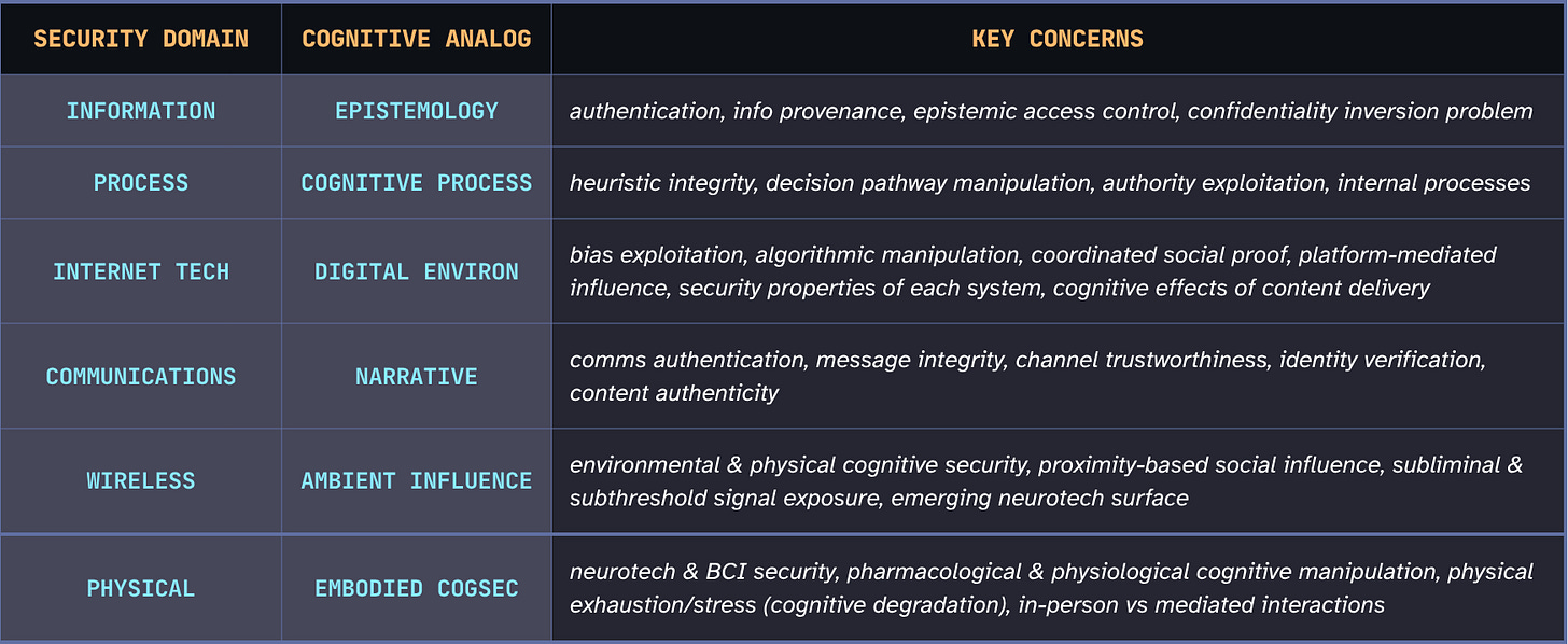 Cognitive Analogs from OSSTMM Security Domains