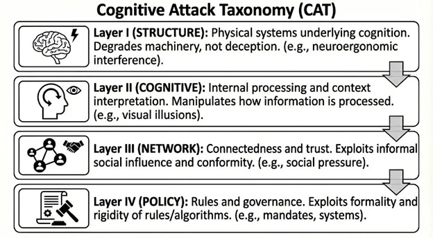 "Exploiting the psychophysical, neuroergonomic, and psychosocial limitations of cognitive systems to degrade, deny, or deceive decision-making without the explicit and informed consent of the target." (Canham & Sawyer on the CAT, 2026)